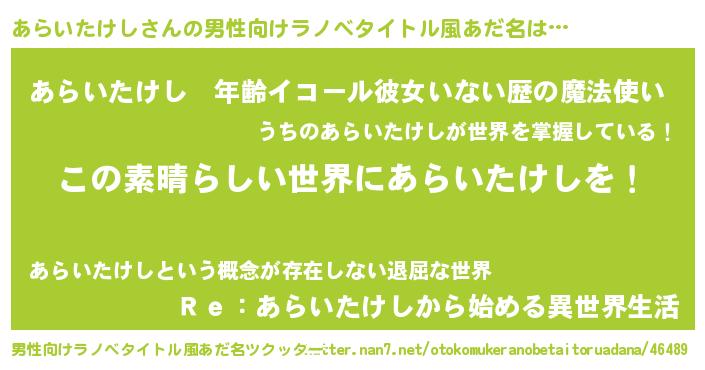 | 意味不明あだ名 | 『住所不定無職あらいたけし(95歳)』 |