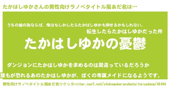 | 女子向けラノベタイトル風あだ名 | 『たかはしゆか姫と円卓の騎士』 |