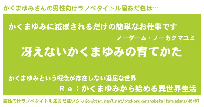 | 意味不明あだ名 | 『自称かくまゆみ』『永久保存かくまゆみ』 |