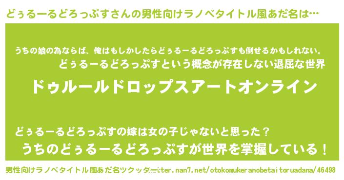 | 胡散臭い通販商品みたいなあだ名 | 『億万長者になれるブレスレット…その名も「どぅるーるどろっぷす」』 |
