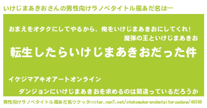 | 胡散臭い通販商品みたいなあだ名 | 『お金では代えられないイリジウム磁石…その名も「いけじまあきお」』 |