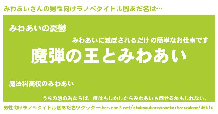 | ヒーロー風カッコイイあだ名 | 『仮面ミワダー』『スーパーミワアイ』 |
