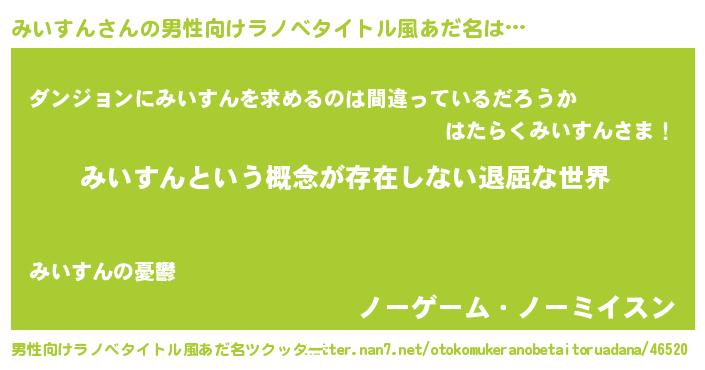 | 伝説のあだ名 | 『聞きしに勝る勇者みいすん』 |