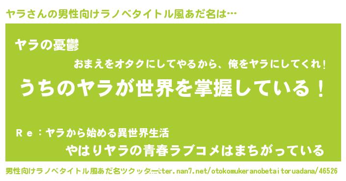 | ヒーロー風カッコイイあだ名 | 『スーパーヤラ』『ウルトラヤラマン』 |