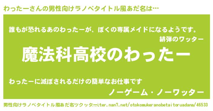 | 意味不明あだ名 | 『自称わったー』『永久保存わったー』 |