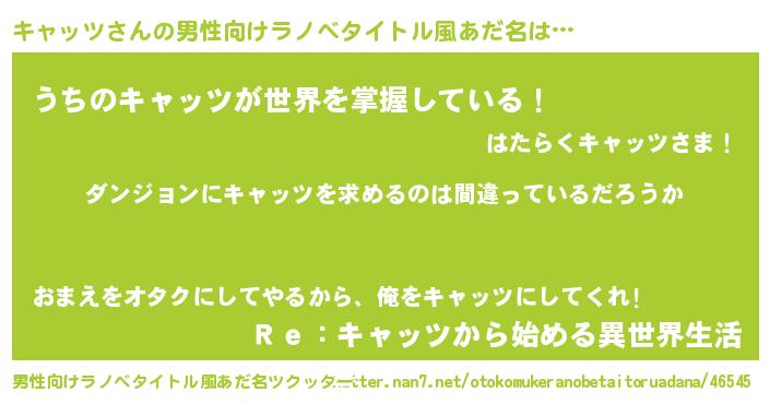 | 女子向けラノベタイトル風あだ名 | 『キャッツは平凡を望む』 |
