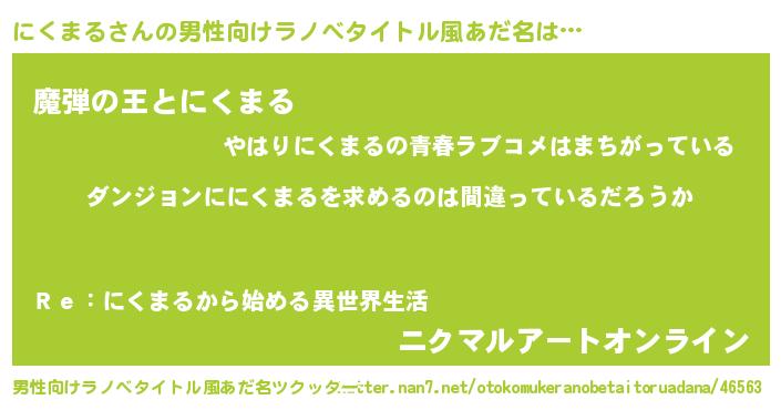 | 女子向けラノベタイトル風あだ名 | 『にくまるは平凡を望む』『闇のにくまる』 |
