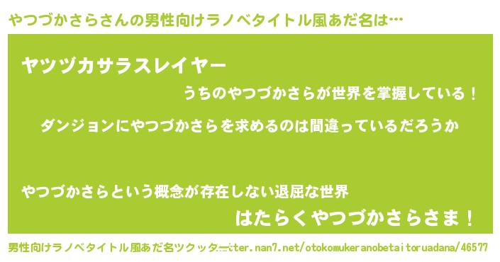 | 女子向けラノベタイトル風あだ名 | 『やつづかさらは平凡を望む』 |