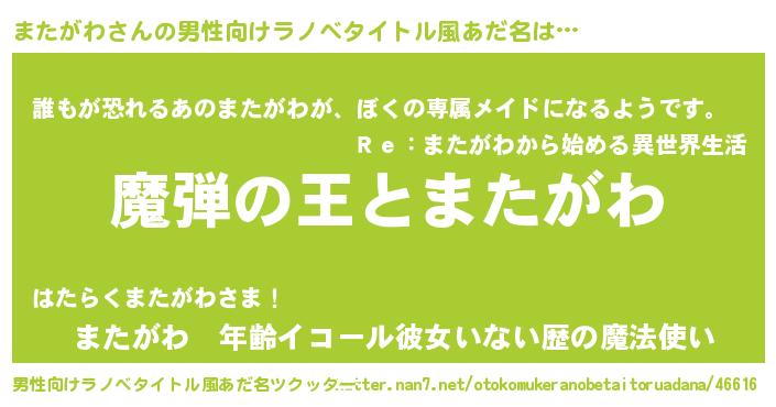 | 意味不明あだ名 | 『住所不定無職またがわ(41歳)』 |