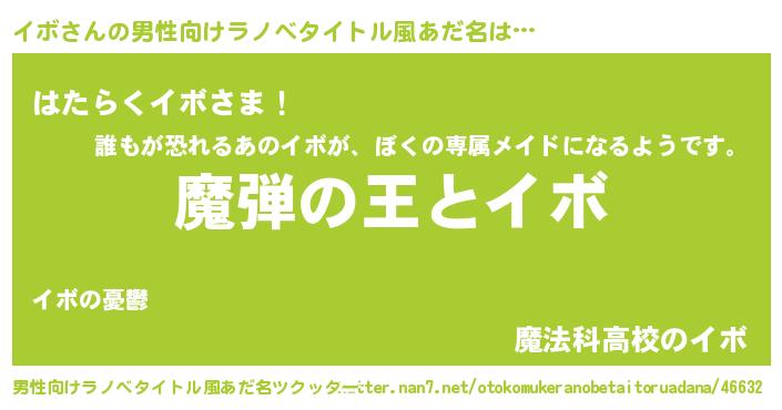 | 女子向けラノベタイトル風あだ名 | 『乙女ゲームの破滅フラグしかない悪役イボに転生してしまった…』 |