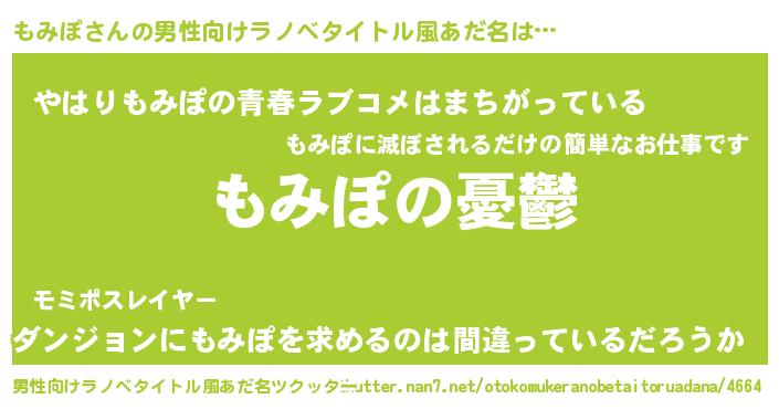 | 胡散臭い通販商品みたいなあだ名 | 『モテモテ間違いなしブレスレット…その名も「もみぽ」』 |