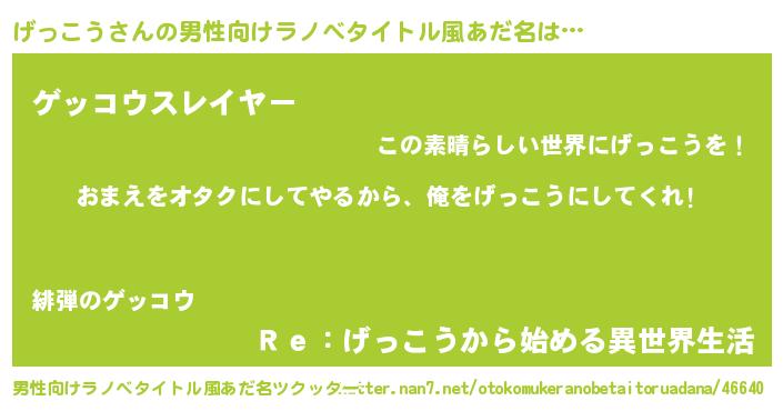 げっこうさんの男性向けラノベタイトル風あだ名をツクッター!
