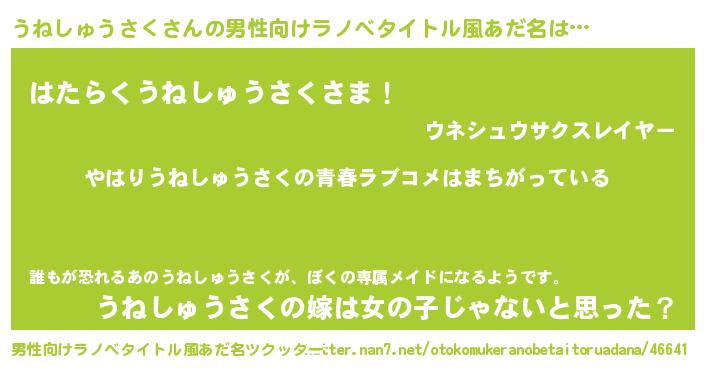 | 女子向けラノベタイトル風あだ名 | 『うねしゅうさくの雑貨屋さん』 |