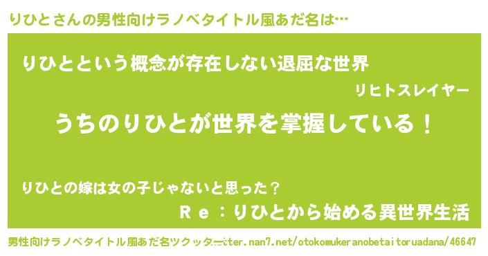 | ヘコむあだ名 | 『りひと(苦笑)』『りひっ子』 |