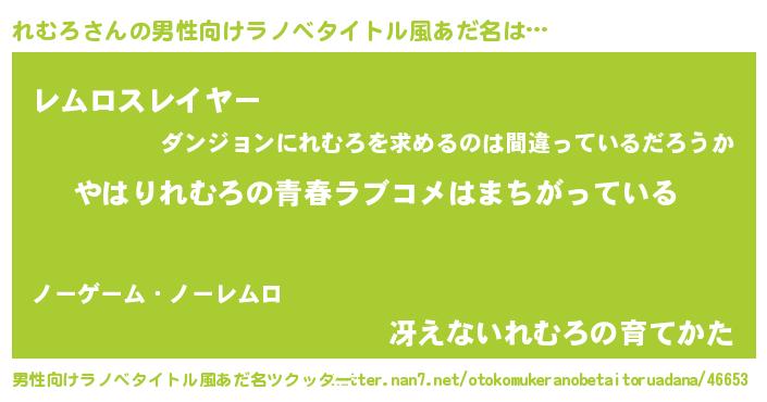| ヒーロー風カッコイイあだ名 | 『ウルトラれむろマン』『黄金騎士レム』 |