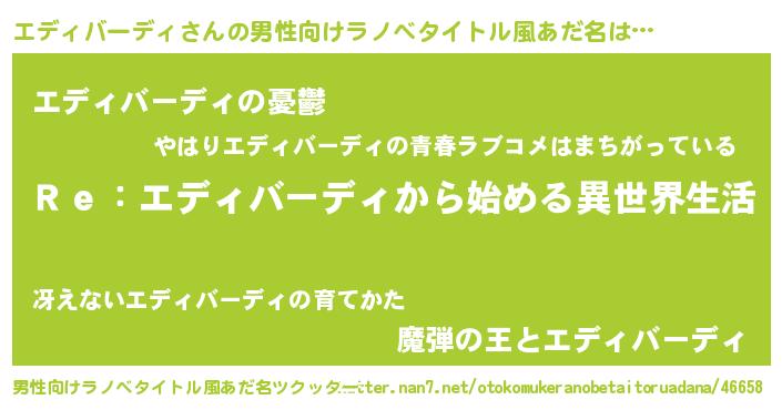 | 女子向けラノベタイトル風あだ名 | 『エディバーディストレイドッグス』 |