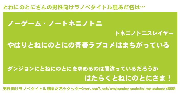 | ファンタジー風あだ名 | 『エターナルトネニノトニー』 |