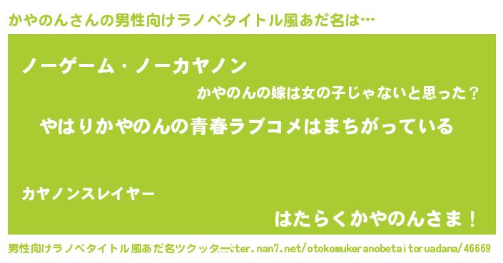 | 女子向けラノベタイトル風あだ名 | 『かやのんの雑貨屋さん』 |