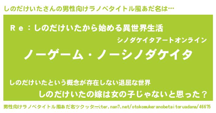 | 女子向けラノベタイトル風あだ名 | 『死神しのだけいたの再婚』 |