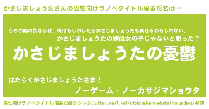 | 胡散臭い通販商品みたいなあだ名 | 『モテモテ間違いなし霊験あらたかなお札…その名も「かさじましょうた」』 |