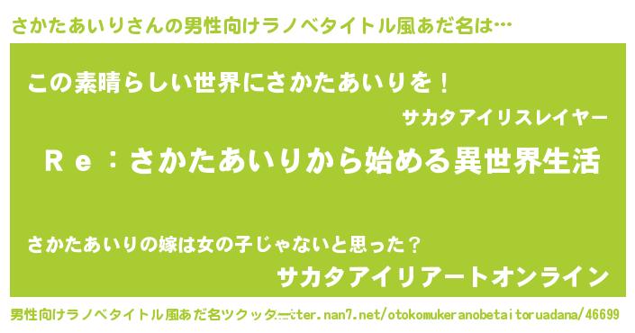 さかたあいりさんの男性向けラノベタイトル風あだ名をツクッター!