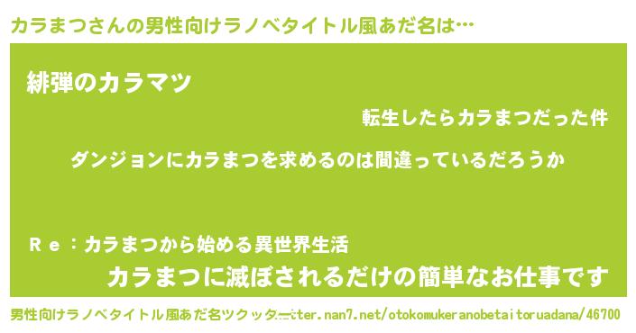 | 意味不明あだ名 | 『とにかく怪しいカラまつ』 |