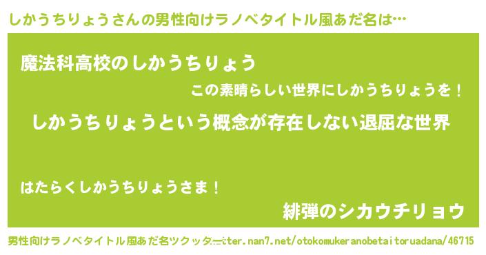 | ヘコむあだ名 | 『しかうちりょう(震え声)』『しかにゅー』 |