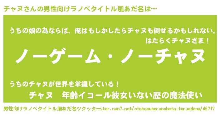 | 女子向けラノベタイトル風あだ名 | 『死神チャヌの再婚』『チャヌの婚約者』 |