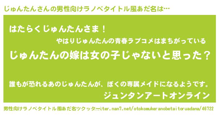 | 胡散臭い通販商品みたいなあだ名 | 『全米が絶賛したサプリメント…その名も「じゅんたん」』 |
