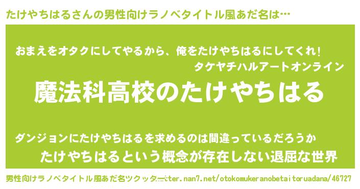 | 意味不明あだ名 | 『自称たけやちはる』 |
