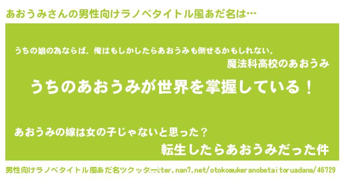 | 意味不明あだ名 | 『あおうみフォーエバー』『自称あおうみ』 |