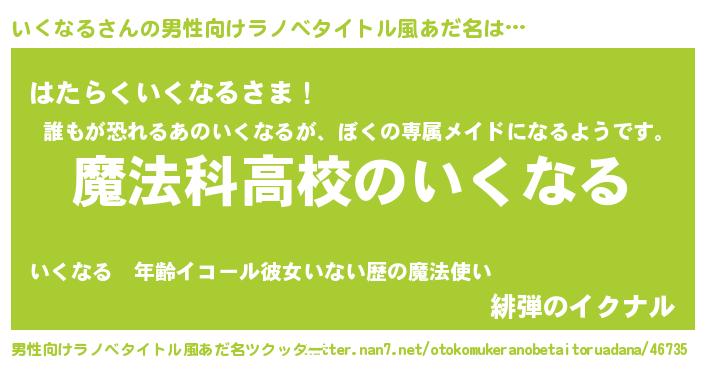 | 意味不明あだ名 | 『自称いくなる』『永久保存いくなる』 |