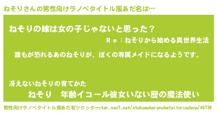 | 女子向けラノベタイトル風あだ名 | 『異世界でカフェねそりを開店しました。』 |