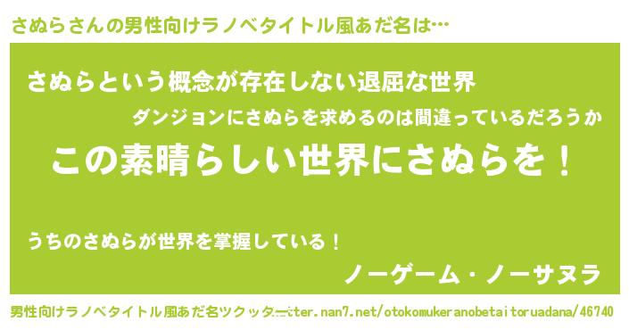 | ヘコむあだ名 | 『さぬら(苦笑)』『さぬ太郎』 |
