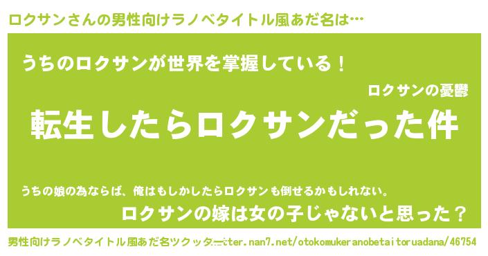 | 女子向けラノベタイトル風あだ名 | 『ロクサンの玉の輿計画!』 |