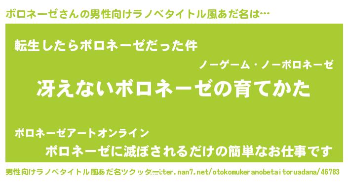 | 女子向けラノベタイトル風あだ名 | 『男装ボロネーゼの憂鬱な任務』 |