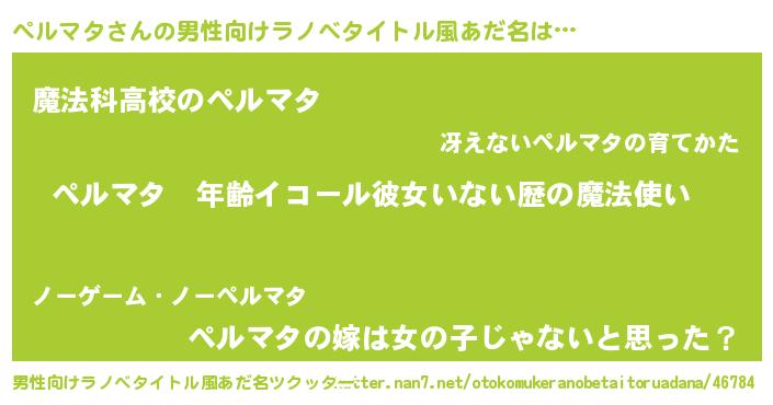 | 女子向けラノベタイトル風あだ名 | 『ペルマタの玉の輿計画!』 |