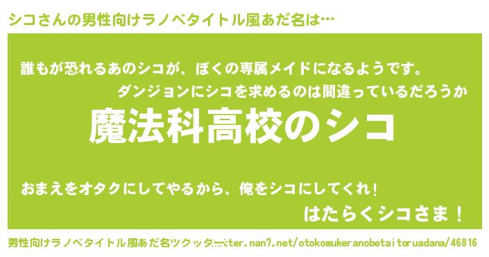 | 女子向けラノベタイトル風あだ名 | 『シコアンティーク』『シコは平凡を望む』 |
