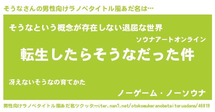 | 胡散臭い通販商品みたいなあだ名 | 『来世でも幸せになれる水素水…その名も「そうな」』 |