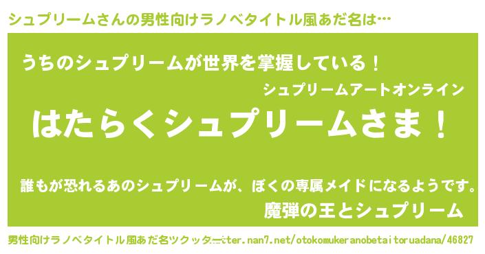 | ヘコむあだ名 | 『シュにゅー』『シュプリーム(爆)』 |