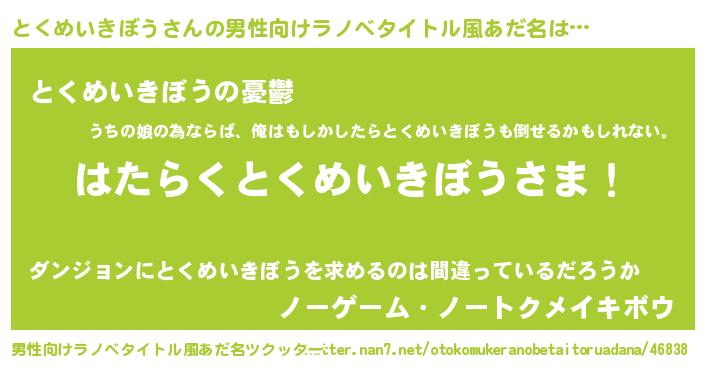 | 胡散臭い通販商品みたいなあだ名 | 『必ず成功する水晶球…その名も「とくめいきぼう」』 |
