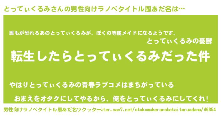 | 伝説のあだ名 | 『古より伝わる勇者とってぃくるみ』 |
