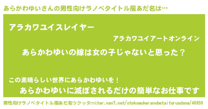 | 女子向けラノベタイトル風あだ名 | 『あらかわゆい様がみてる』 |