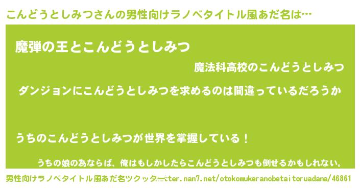 | 意味不明あだ名 | 『とにかく怪しいこんどうとしみつ』 |
