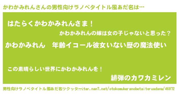 女子向けラノベタイトル風あだ名 | 『かわかみれんの玉の輿計画!』 |