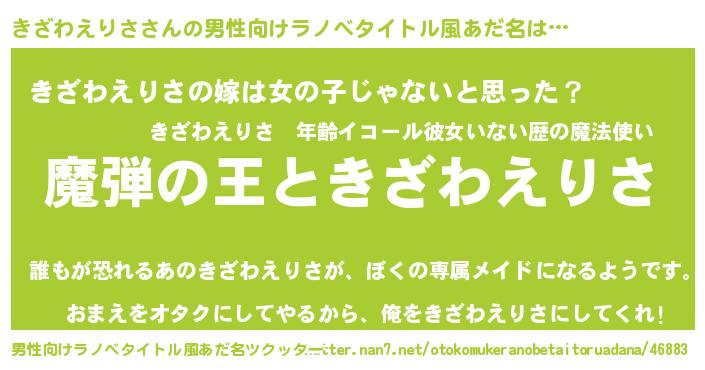 きざわえりささんの男性向けラノベタイトル風あだ名をツクッター!