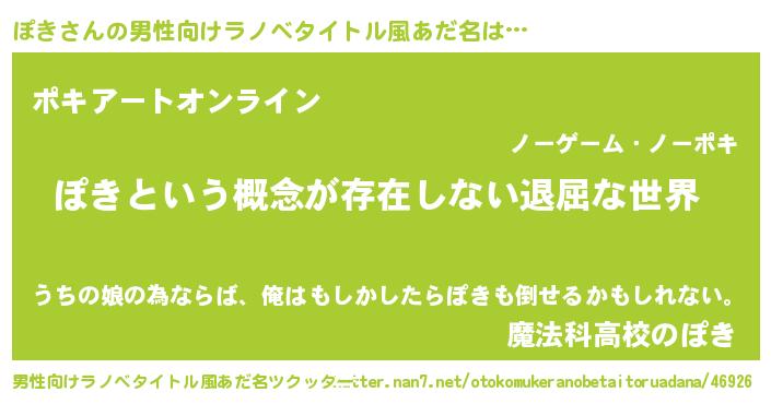 | ヘコむあだ名 | 『ぽき(笑)』『ぽきっふぃ~』 |