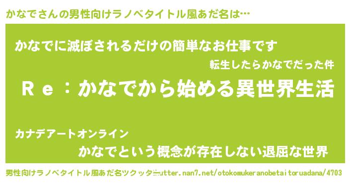 | 意味不明あだ名 | 『自称かなで』『永久保存かなで』 |