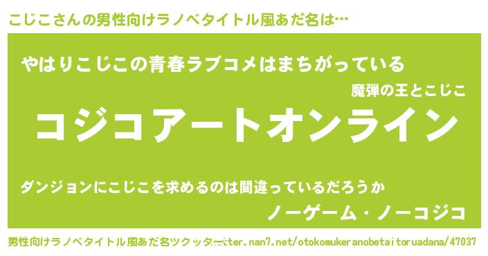 | 女子向けラノベタイトル風あだ名 | 『こじこ姫と円卓の騎士』 |