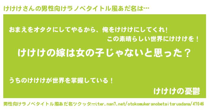 | 女子向けラノベタイトル風あだ名 | 『けけけ様がみてる』『けけけ恋絵巻』 |